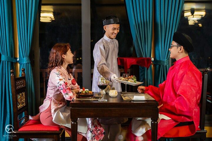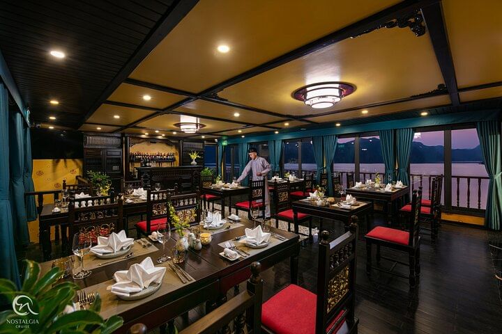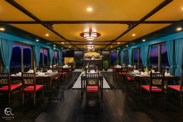 Sailing on the emerald waters of Lan Ha Bay, Icon Cruises takes passengers on a journey to the past, offering an opportunity to explore Vietnam's stunning historic architecture. The cruise ship is truly unique, meticulously designed to recreate the grandeur of the Nguyen Dynasty and its royal architectural style. Aboard the elegant "Nostalgia", guests can experience the most authentic traditional ambiance while traveling back in time, staying in our exclusive, uniquely designed suites, each with its own distinct pattern.