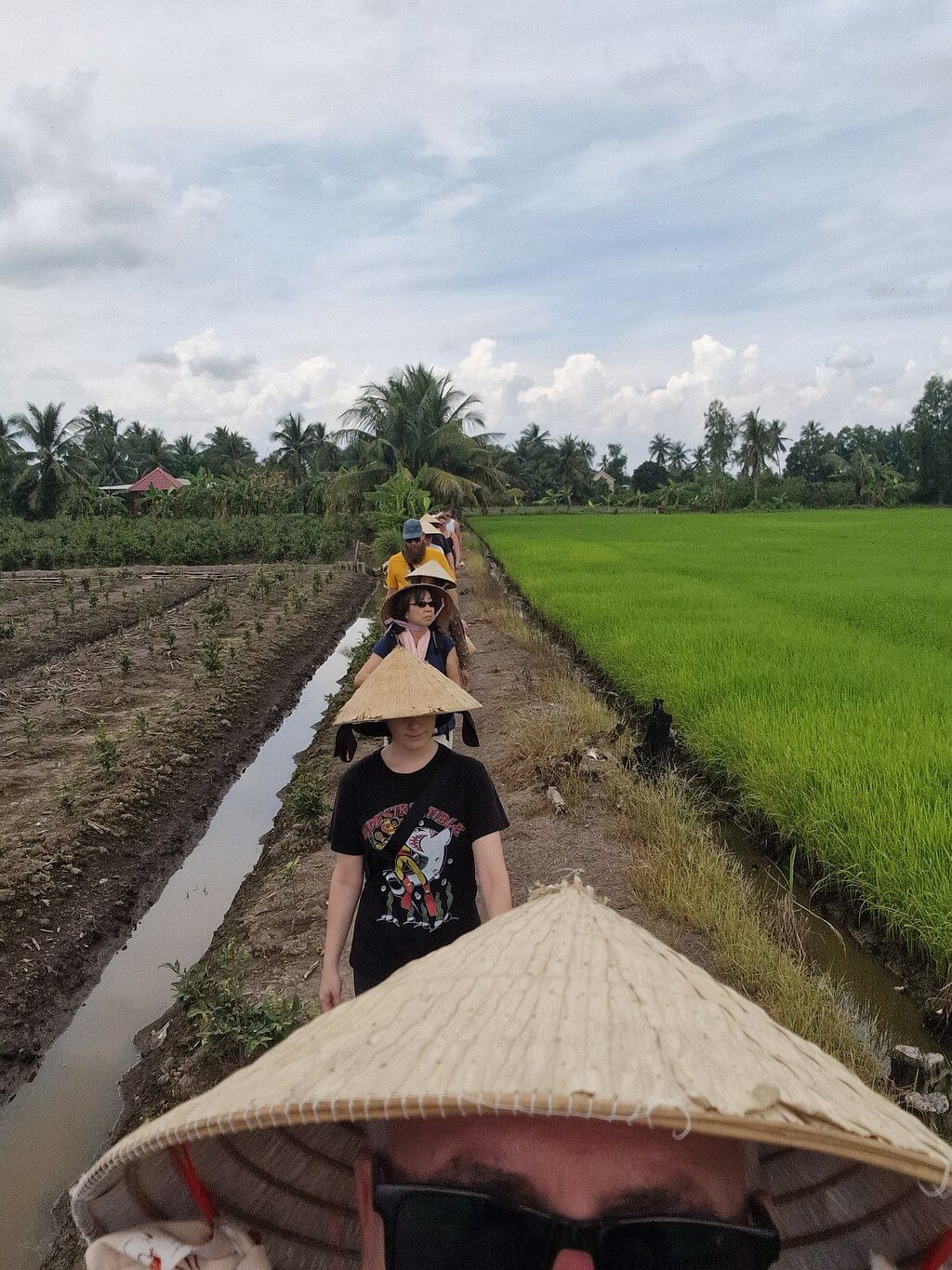 Visit a lovely pagoda where a private chef prepares a Vietnamese lunch featuring traditional favorites, such as fresh spring rolls, ginger chicken, caramelized pork or elephant ear fish — a Mekong Delta specialty.