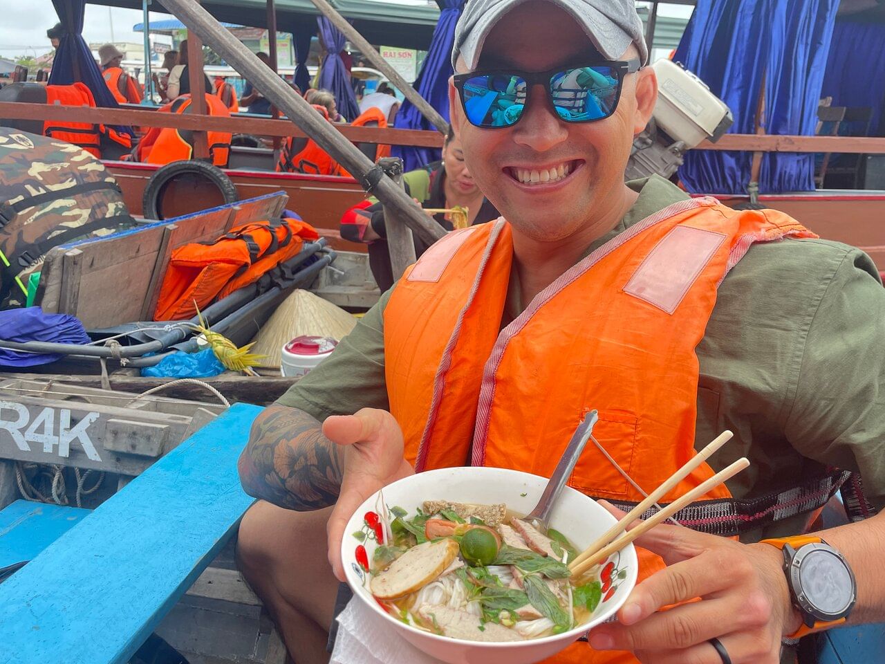 Depart before sunrise to start this comprehensive full-day tour. Breakfast is on the Cai Rang floating market, the biggest in the Mekong Delta. Enjoy the opportunity to experience working factories producing rice noodles and local baked goods. Immerse yourself in rural life with an authentic village lunch and cake buffet while exploring a pomelo and star apple orchard. Visit a floating fish raft village and watch the snakehead fish dance.